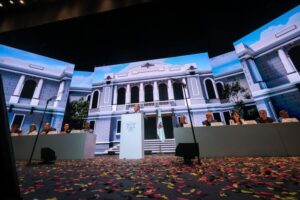 El Gobernador de Jalisco Enrique Alfaro Ramírez acompaña a Ricardo Villanueva Lomelí en su quinto informe de actividades como rector de la Universidad de Guadalajara.