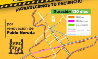 ¡Tome nota, tiempo y rutas alternas! Este lunes inician las obras en la Av. Pablo Neruda y dicha vialidad permanecerá cerrada durante 2 meses. El...