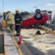 A punto de caer a los carriles laterales y derribando una luminaria… Así terminó un vehículo en Calzada Lázaro Cárdenas, al cruce con la calle Fuelle...